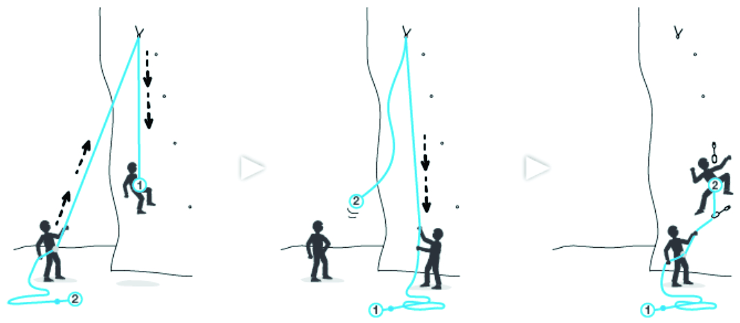Leagă alpinistul de partenerul său sau de un punct de ancorare fix.